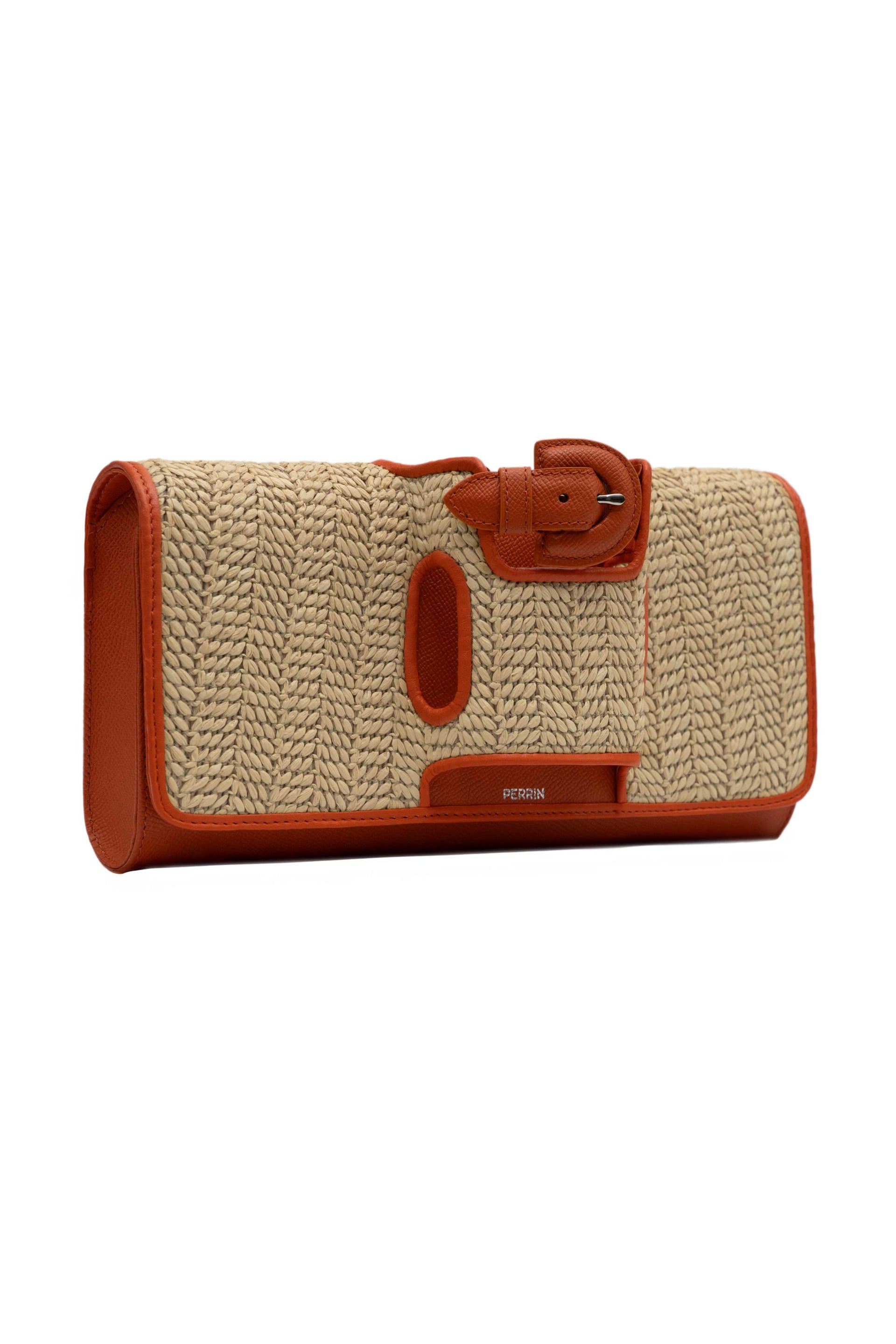 100% Calfskin leather with raphia details