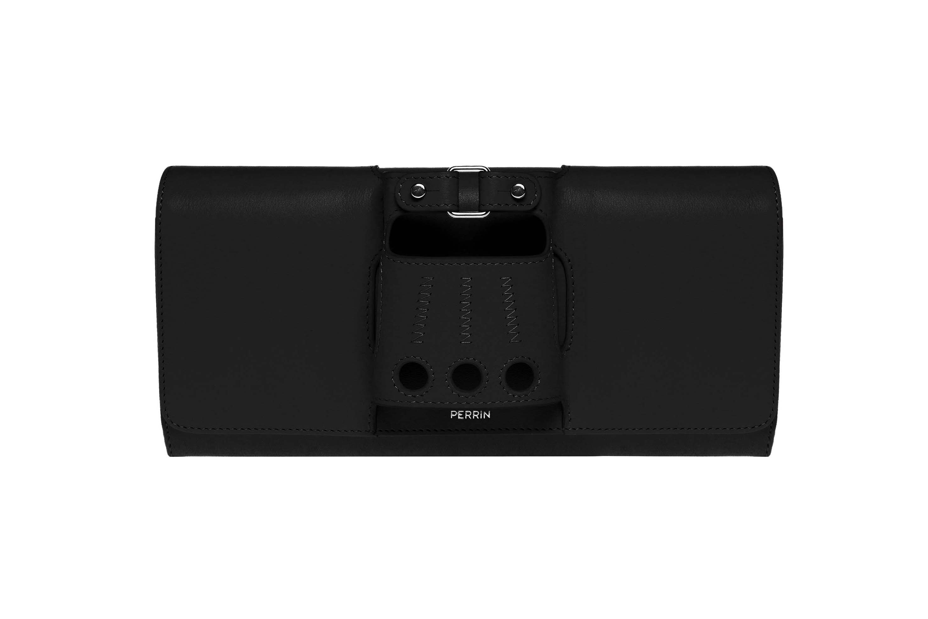 1. Black calfskin w/ ruthenium plated metal