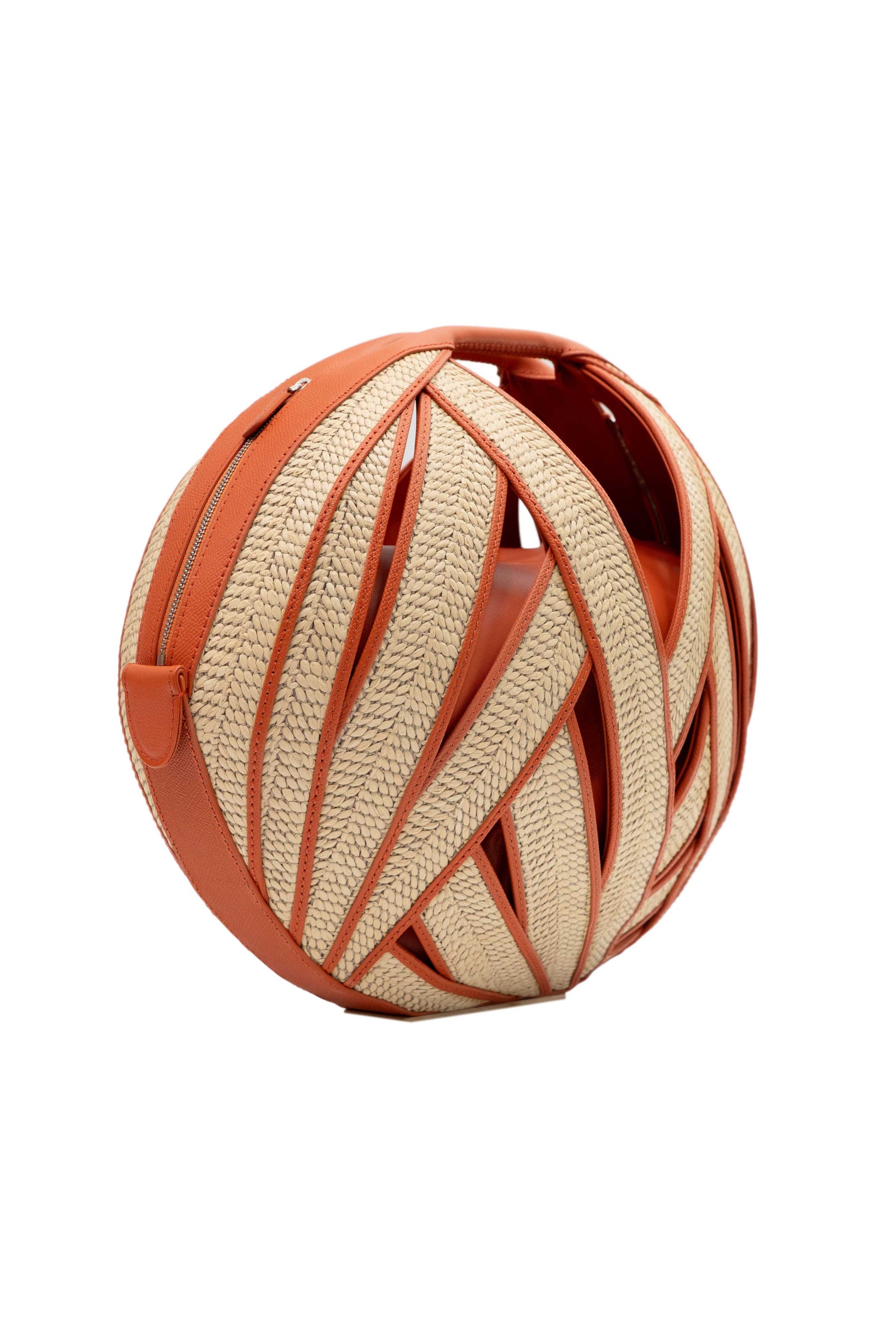 100% Calfskin leather with raphia detailsBasket purseStructured top handleZipper closureWood Base